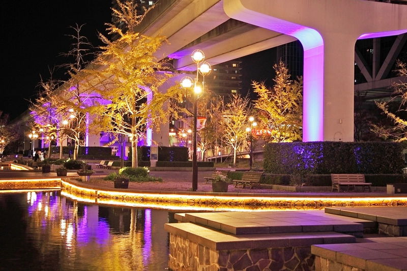 人口の小川も広がります。冬季は日没が早くなるためイルミネーションが楽しめます。